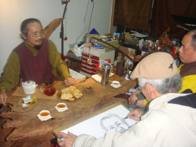 余太高老師4月9號造訪藝術空間,心血來潮,幫吳開乾速寫