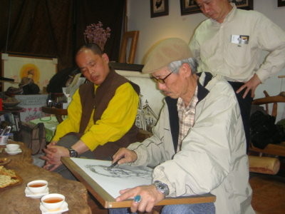 余老師很提攜後進,告訴吳開乾畫畫要放開的要領.