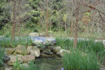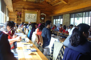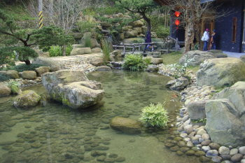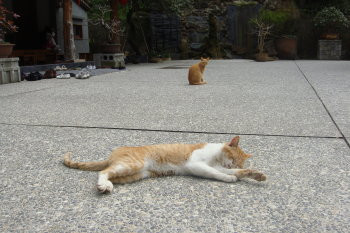 食堂前的廣庭, 慵懶的貓多自在阿!